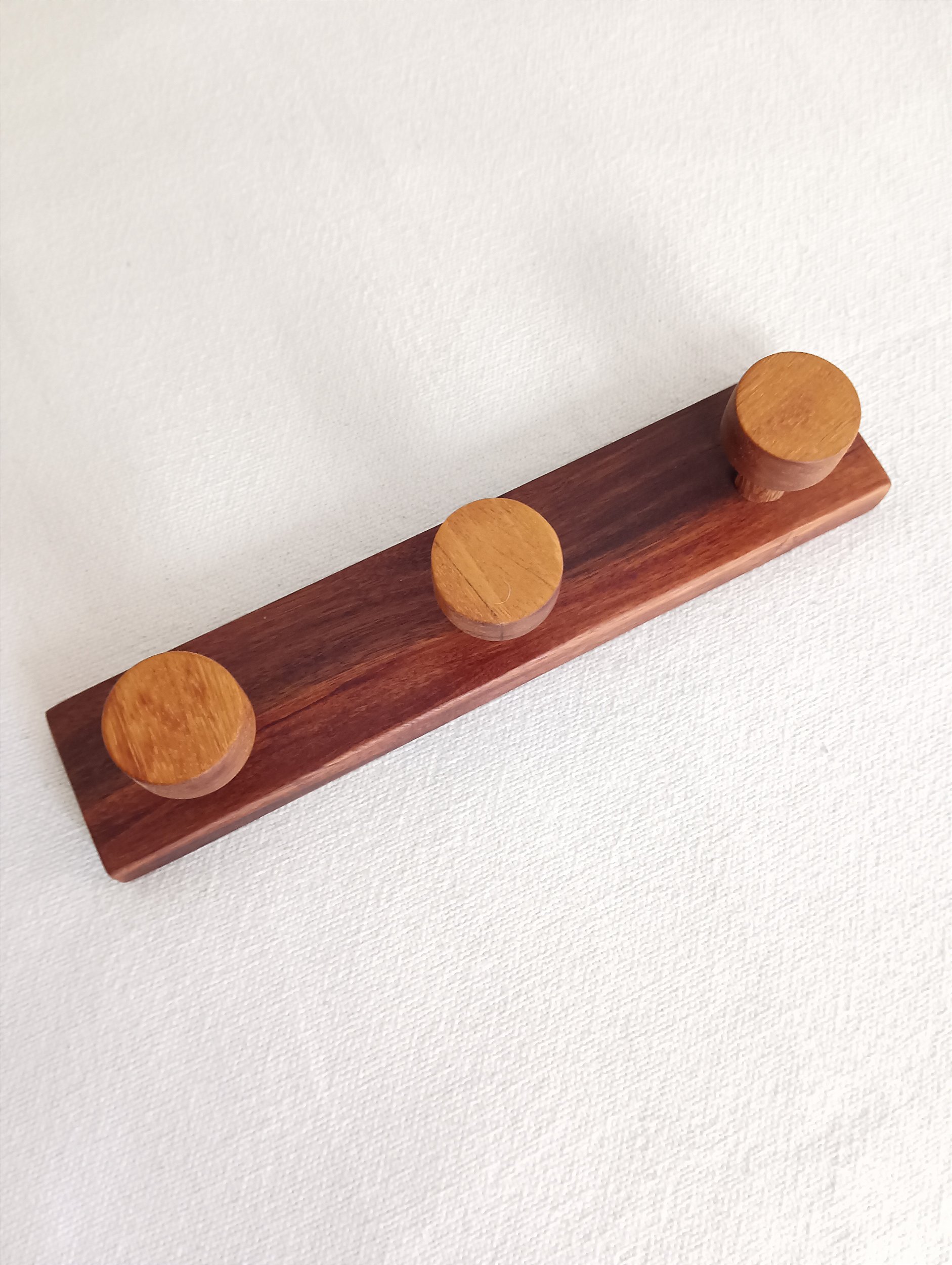 Cabideiro confecionado em madeira nobre, hidratado com óleo mineral e cera de abelha.