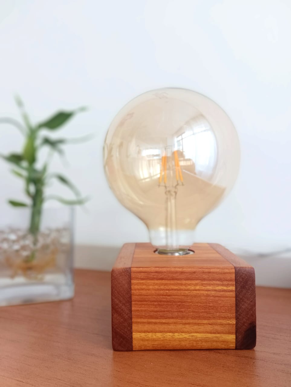 Uma linda luminaria confeccionada com madeiras nobres. Utilizamos a técnica de marchetaria para dar um toque especial e unica à peça.